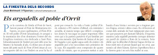 Per la carretera de Lleida al Pont de Suert, havent passat el Pont de Montanyana trobarem, en pocs quilòmetres, el Pont d’Orrit. El vell poble d’Orrit (abandonat), és arrapat a la muntanya des d’on dominava l’estret del riu. L’església romànica era dedicada a Sant Pere. L’abandonament de l’indret per part dels seus habitants i la baixada al pla, va donar peu al naixement del petit nucli de Pont d’Orrit situat al costat esquerre del riu i en l’indret on avui hi ha el pont per creuar-lo. La vida a l’antic poblat d’Orrit, enlairat a 851 metres d’altitud, era rutinària i senzilla, al mateix temps que difícil i complexa. Les dones hi van jugar un paper important. Elles eren qui a la pastera pastaven el pa familiar per tota una mesada. Qui havien de baixar al riu per fer bugada o per agafar aigua amb els càntirs i els argadells per a les necessitats més primàries de la casa. Els argadells eren composats de quatre cistells de vímets, que es posaven meitat a cada banda d’una bèstia i servien per a traginar gerres d’aigua, aviram i altres coses. Es col·locaven al costat dels animals de bast mitjançant unes nanses que passaven per damunt l’albarda. D’aquesta manera cada argadell permetia carregar almenys un parell de càntirs a llom de la somera. Sens dubte que la dificultat d’obtenir l’aigua els feia valorar molt més el preuat líquid que no avui, que només cal obrir l’aixeta. Llavors s’aprofitava fins a la darrera gota i no se’n feia malbé ni una.